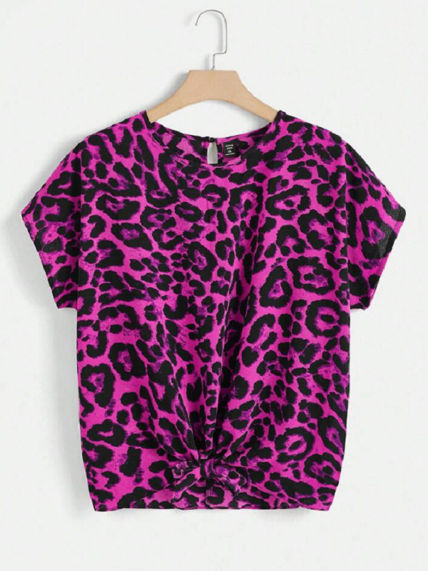 Blusa estampado leopardo con nudo en tonos Negro y Morado.