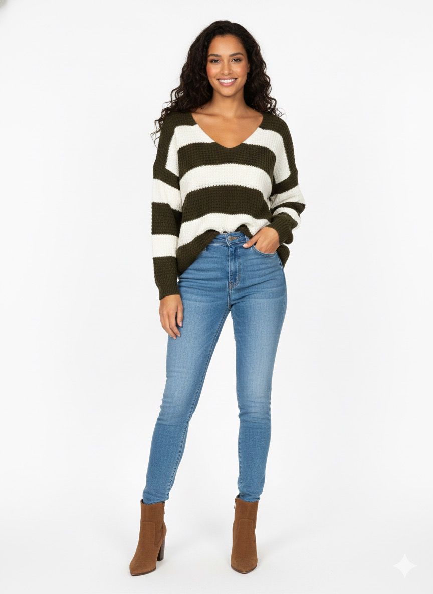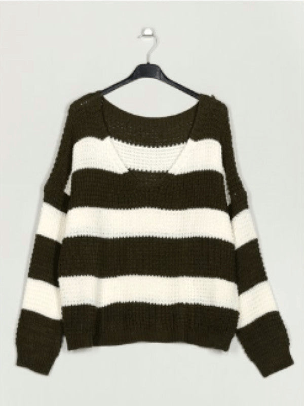 Jersey amplio de Rayas Horizontales Blanco/Verde para Mujer.